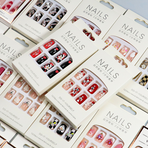 Wholesale Press on Nails 24pcs/box Full Cover Short Square Comfortable Artificial Nails for Kids High Quality Press on Nails